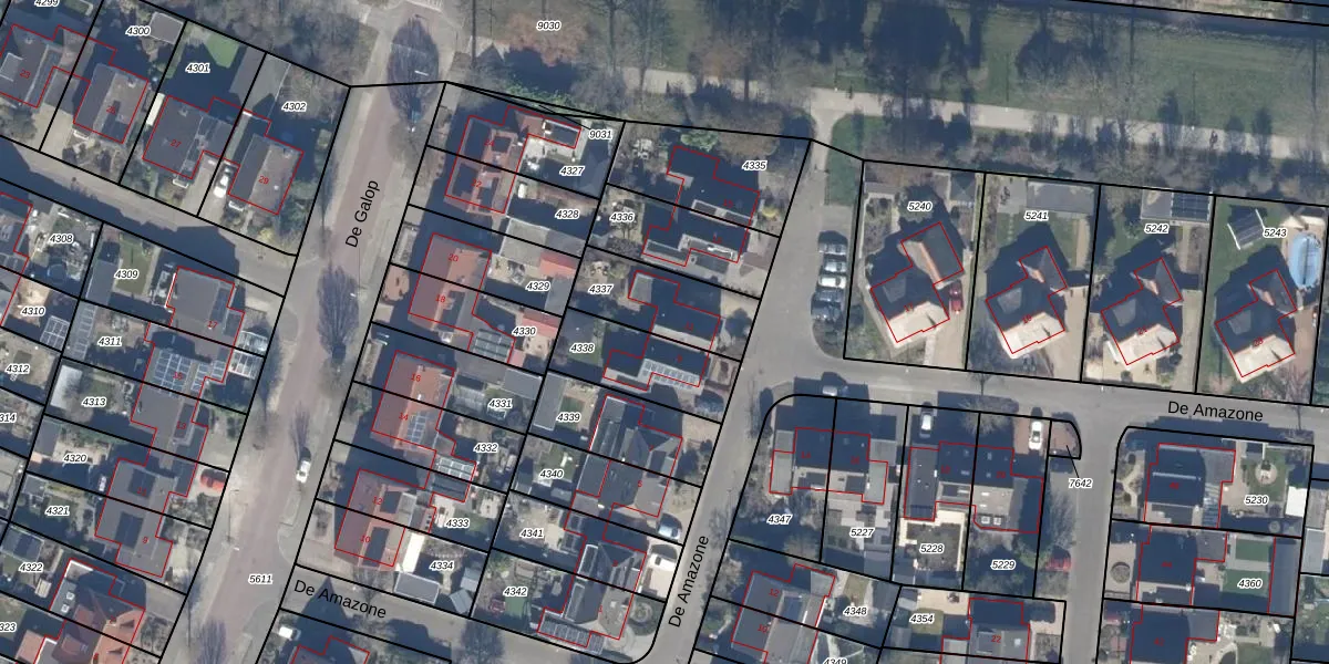 Het perceel waarop De Amazone 11 staat heeft een oppervlakte van 270 m². Dit is een middelgroot perceel. De perceeloppervlakte wordt geregistreerd door het Kadaster. Gedetailleerde informatie over de maten van dit perceel kunt u vinden in het rapport Kadastrale kaart met maatvoering van De Amazone 11.