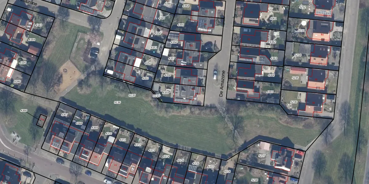 Het perceel waarop De Amazone 32 staat heeft een oppervlakte van 286 m². Dit is een middelgroot perceel. De perceeloppervlakte wordt geregistreerd door het Kadaster. Gedetailleerde informatie over de maten van dit perceel kunt u vinden in het rapport Kadastrale kaart met maatvoering van De Amazone 32.
