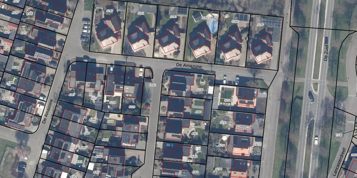 Het perceel waarop De Amazone 46 staat heeft een oppervlakte van 408 m². Dit is een groot perceel. De perceeloppervlakte wordt geregistreerd door het Kadaster. Gedetailleerde informatie over de maten van dit perceel kunt u vinden in het rapport Kadastrale kaart met maatvoering van De Amazone 46.