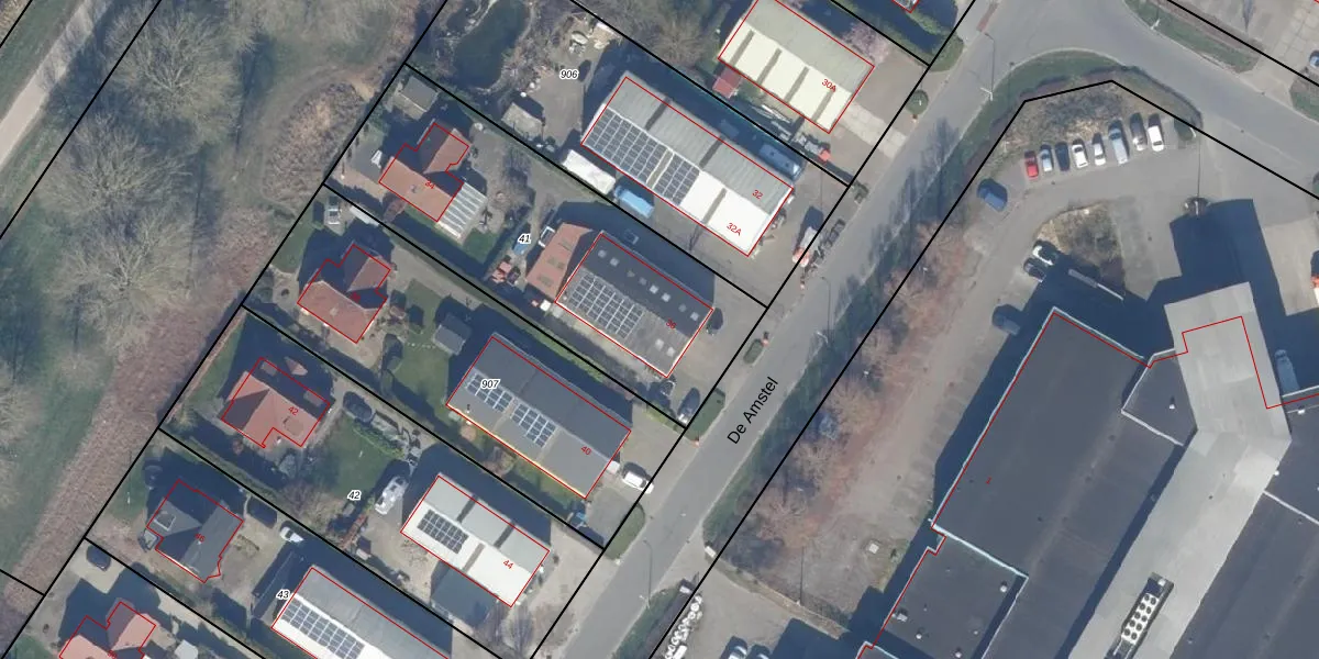 Het perceel waarop De Amstel 36 staat heeft een oppervlakte van 1470 m². Dit is een zeer groot perceel. De perceeloppervlakte wordt geregistreerd door het Kadaster. Gedetailleerde informatie over de maten van dit perceel kunt u vinden in het rapport Kadastrale kaart met maatvoering van De Amstel 36.