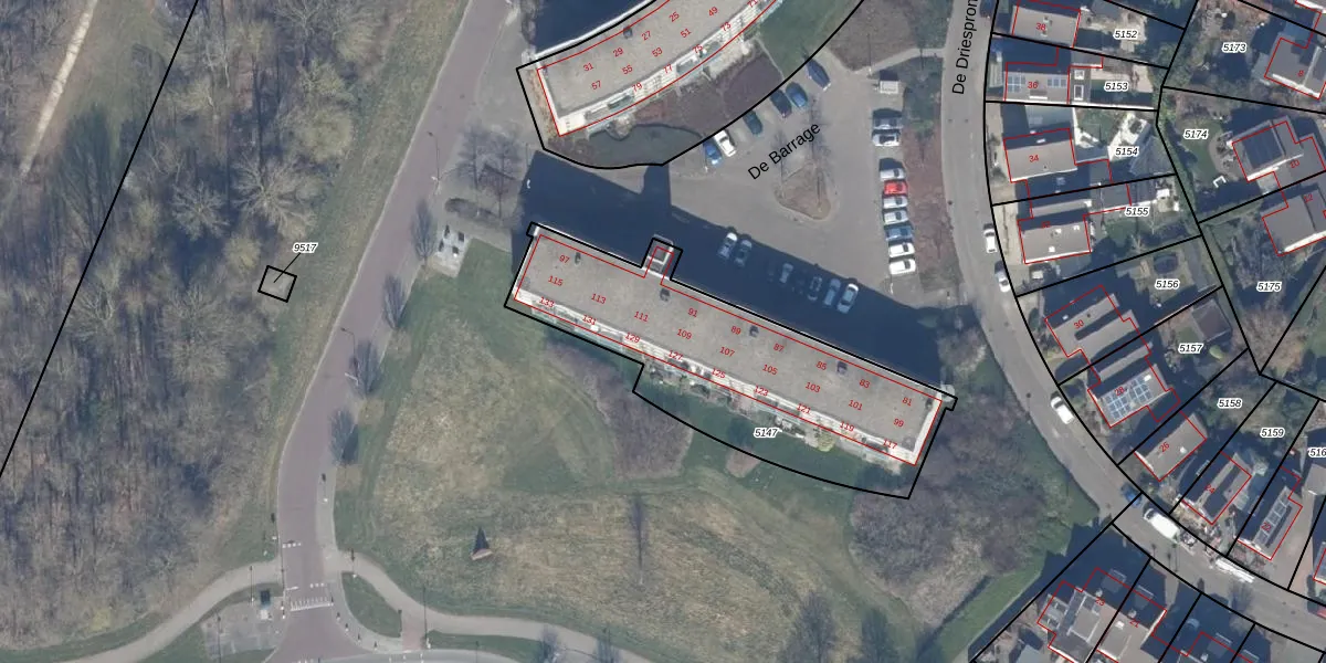De Barrage 123 is gelegen op kadastraal perceel DTN01A5147. Deze kadastrale aanduiding is uniek en wordt gebruikt door het Kadaster om eigendomsrechten en andere zakelijke rechten vast te leggen. Het perceel maakt onderdeel uit van de kadastrale gemeente Dronten.