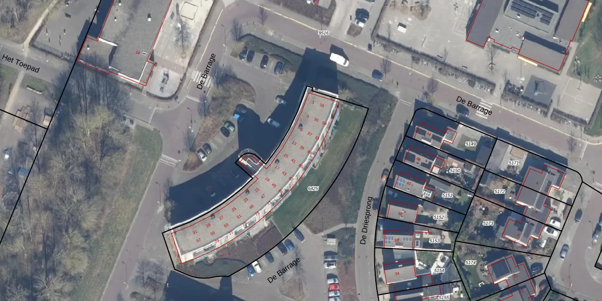 De Barrage 23 is gelegen op kadastraal perceel DTN01A6425. Deze kadastrale aanduiding is uniek en wordt gebruikt door het Kadaster om eigendomsrechten en andere zakelijke rechten vast te leggen. Het perceel maakt onderdeel uit van de kadastrale gemeente Dronten.