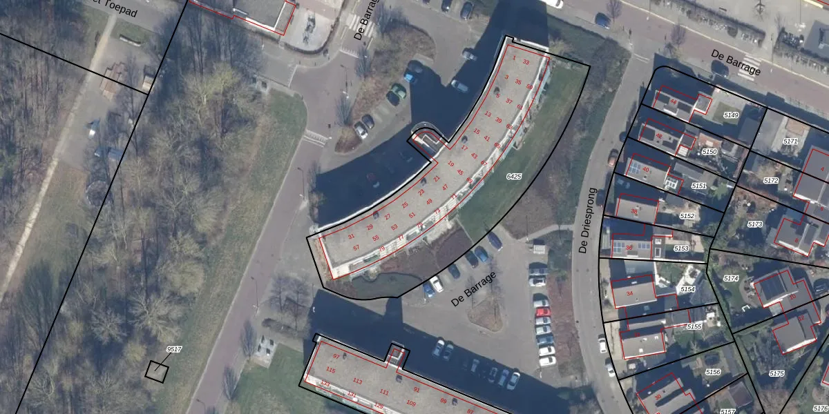 De Barrage 61 is gelegen op kadastraal perceel DTN01A6425. Deze kadastrale aanduiding is uniek en wordt gebruikt door het Kadaster om eigendomsrechten en andere zakelijke rechten vast te leggen. Het perceel maakt onderdeel uit van de kadastrale gemeente Dronten.