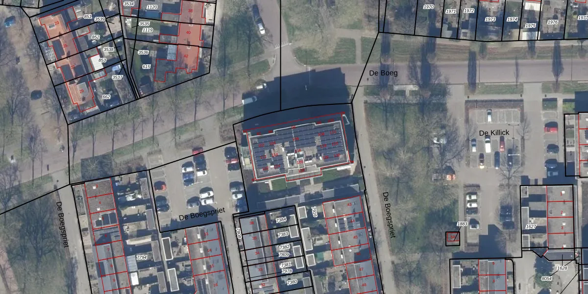 De Boeg 116 is gelegen op kadastraal perceel DTN01A7916. Deze kadastrale aanduiding is uniek en wordt gebruikt door het Kadaster om eigendomsrechten en andere zakelijke rechten vast te leggen. Het perceel maakt onderdeel uit van de kadastrale gemeente Dronten.