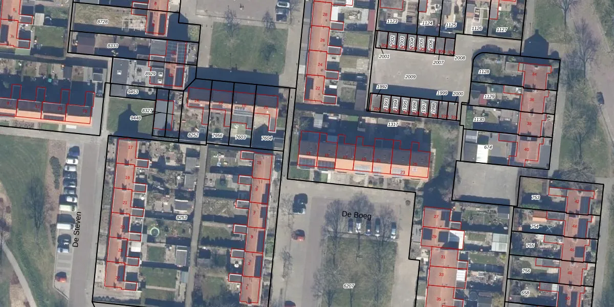 Het perceel waarop De Boeg 13 staat heeft een oppervlakte van 3996 m². Dit is een zeer groot perceel. De perceeloppervlakte wordt geregistreerd door het Kadaster. Gedetailleerde informatie over de maten van dit perceel kunt u vinden in het rapport Kadastrale kaart met maatvoering van De Boeg 13.