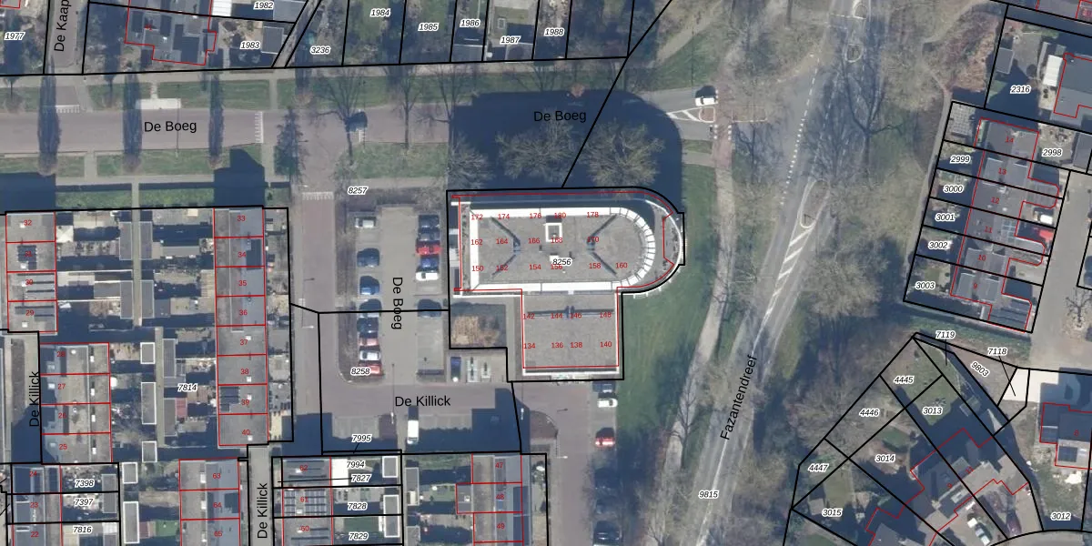 De Boeg 156 is gelegen op kadastraal perceel DTN01A8256. Deze kadastrale aanduiding is uniek en wordt gebruikt door het Kadaster om eigendomsrechten en andere zakelijke rechten vast te leggen. Het perceel maakt onderdeel uit van de kadastrale gemeente Dronten.