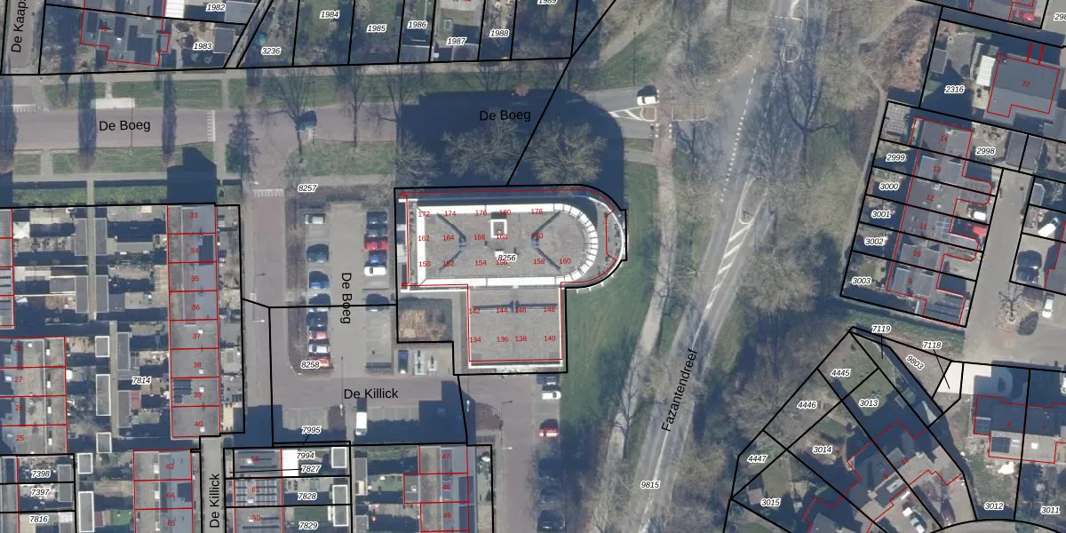 De Boeg 158 is gelegen op kadastraal perceel DTN01A8256. Deze kadastrale aanduiding is uniek en wordt gebruikt door het Kadaster om eigendomsrechten en andere zakelijke rechten vast te leggen. Het perceel maakt onderdeel uit van de kadastrale gemeente Dronten.