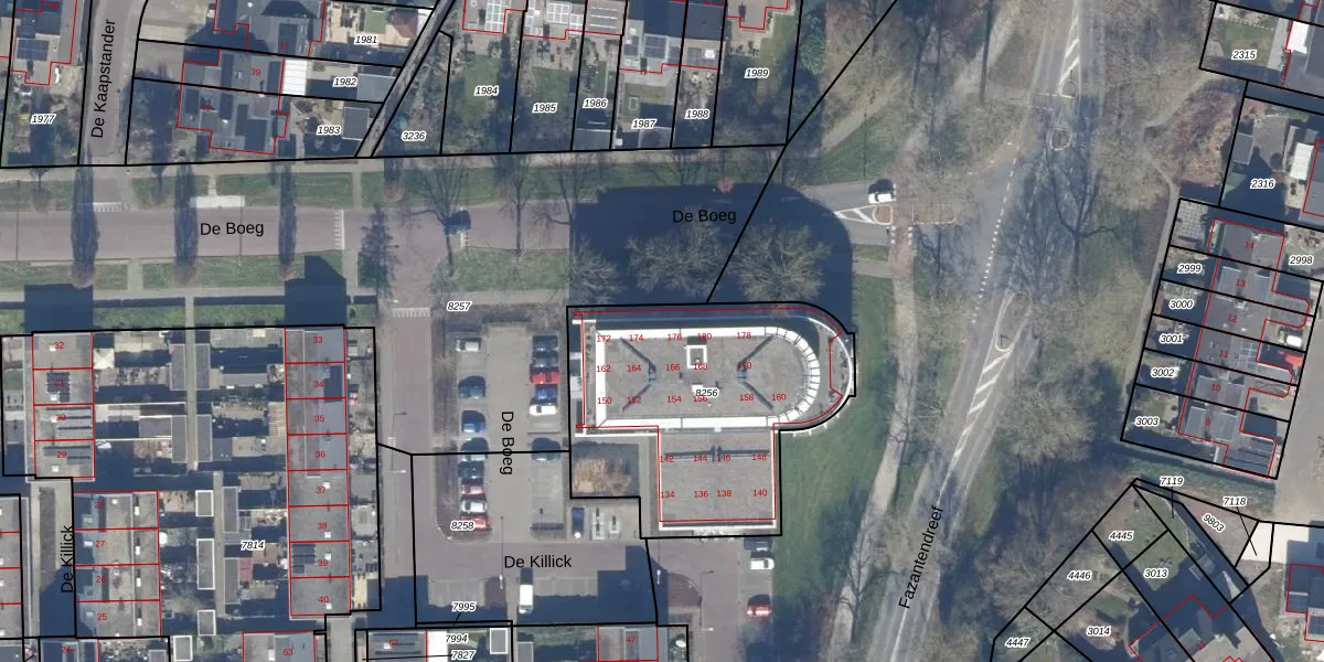 Het perceel waarop De Boeg 174 staat heeft een oppervlakte van 1240 m². Dit is een zeer groot perceel. De perceeloppervlakte wordt geregistreerd door het Kadaster. Gedetailleerde informatie over de maten van dit perceel kunt u vinden in het rapport Kadastrale kaart met maatvoering van De Boeg 174.
