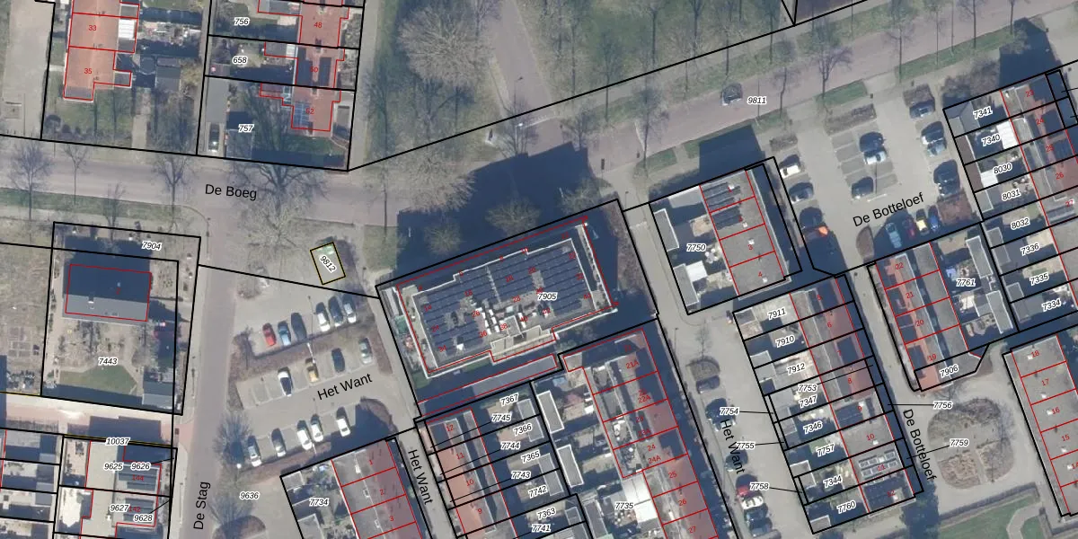 Het perceel waarop De Boeg 20 staat heeft een oppervlakte van 1193 m². Dit is een zeer groot perceel. De perceeloppervlakte wordt geregistreerd door het Kadaster. Gedetailleerde informatie over de maten van dit perceel kunt u vinden in het rapport Kadastrale kaart met maatvoering van De Boeg 20.