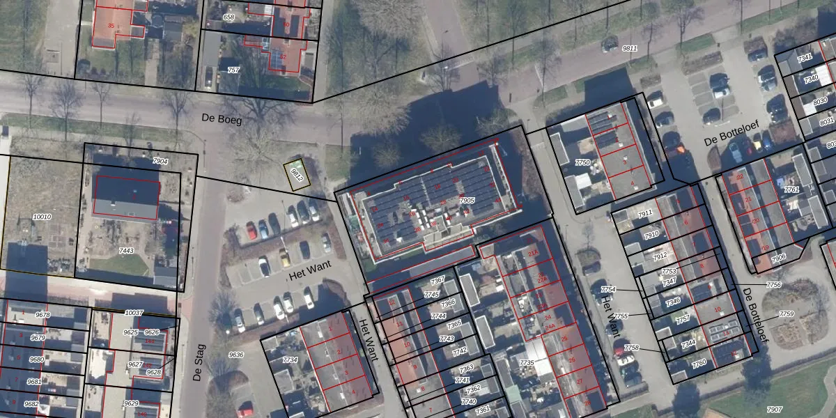 Het perceel waarop De Boeg 28 staat heeft een oppervlakte van 1193 m². Dit is een zeer groot perceel. De perceeloppervlakte wordt geregistreerd door het Kadaster. Gedetailleerde informatie over de maten van dit perceel kunt u vinden in het rapport Kadastrale kaart met maatvoering van De Boeg 28.