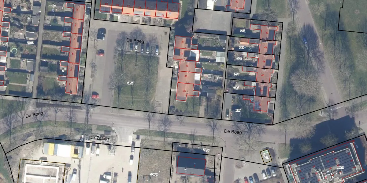 Het perceel waarop De Boeg 35 staat heeft een oppervlakte van 3996 m². Dit is een zeer groot perceel. De perceeloppervlakte wordt geregistreerd door het Kadaster. Gedetailleerde informatie over de maten van dit perceel kunt u vinden in het rapport Kadastrale kaart met maatvoering van De Boeg 35.