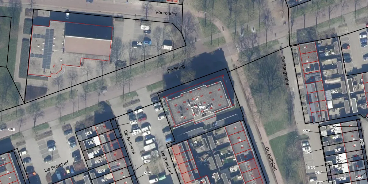 De Boeg 50 is gelegen op kadastraal perceel DTN01A7913. Deze kadastrale aanduiding is uniek en wordt gebruikt door het Kadaster om eigendomsrechten en andere zakelijke rechten vast te leggen. Het perceel maakt onderdeel uit van de kadastrale gemeente Dronten.