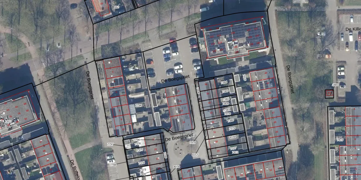 Het perceel waarop De Boegspriet 13 staat heeft een oppervlakte van 1679 m². Dit is een zeer groot perceel. De perceeloppervlakte wordt geregistreerd door het Kadaster. Gedetailleerde informatie over de maten van dit perceel kunt u vinden in het rapport Kadastrale kaart met maatvoering van De Boegspriet 13.