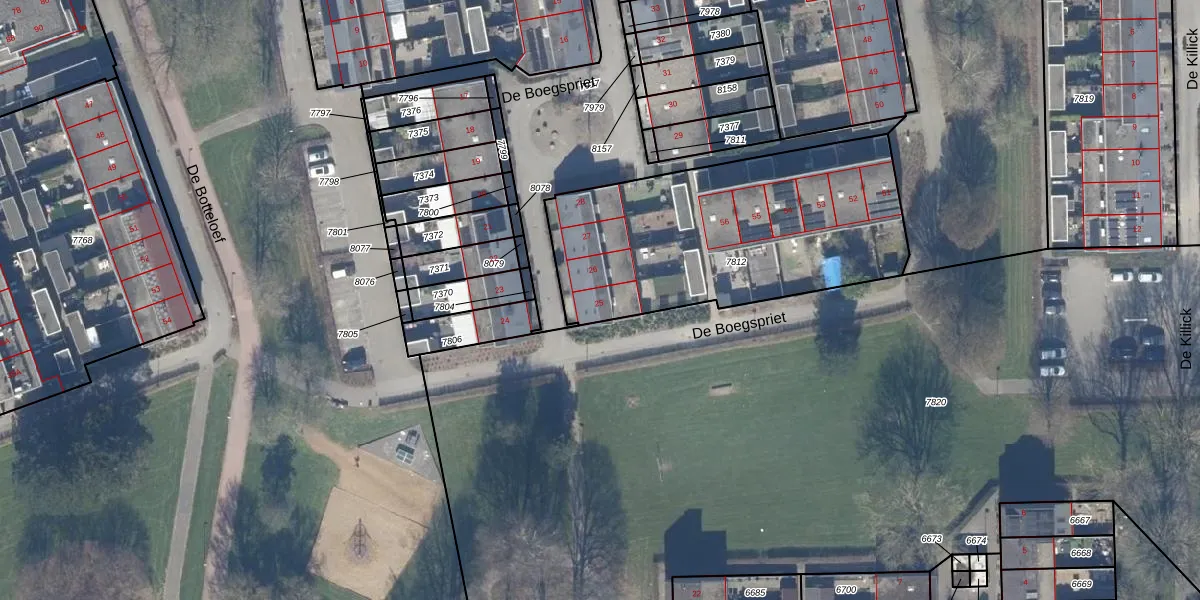 Het perceel waarop De Boegspriet 25 staat heeft een oppervlakte van 1335 m². Dit is een zeer groot perceel. De perceeloppervlakte wordt geregistreerd door het Kadaster. Gedetailleerde informatie over de maten van dit perceel kunt u vinden in het rapport Kadastrale kaart met maatvoering van De Boegspriet 25.