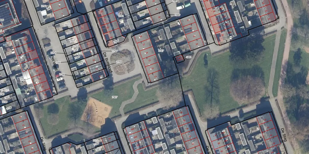 De Botteloef 13 is gelegen op kadastraal perceel DTN01A7767. Deze kadastrale aanduiding is uniek en wordt gebruikt door het Kadaster om eigendomsrechten en andere zakelijke rechten vast te leggen. Het perceel maakt onderdeel uit van de kadastrale gemeente Dronten.