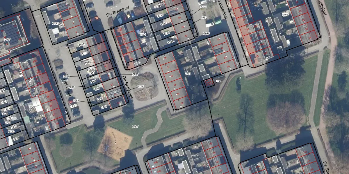 De Botteloef 15 is gelegen op kadastraal perceel DTN01A7767. Deze kadastrale aanduiding is uniek en wordt gebruikt door het Kadaster om eigendomsrechten en andere zakelijke rechten vast te leggen. Het perceel maakt onderdeel uit van de kadastrale gemeente Dronten.