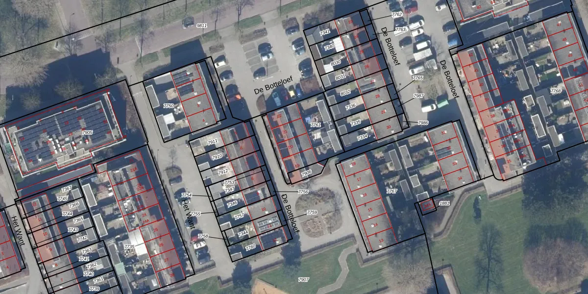 Het perceel waarop De Botteloef 20 staat heeft een oppervlakte van 491 m². Dit is een groot perceel. De perceeloppervlakte wordt geregistreerd door het Kadaster. Gedetailleerde informatie over de maten van dit perceel kunt u vinden in het rapport Kadastrale kaart met maatvoering van De Botteloef 20.