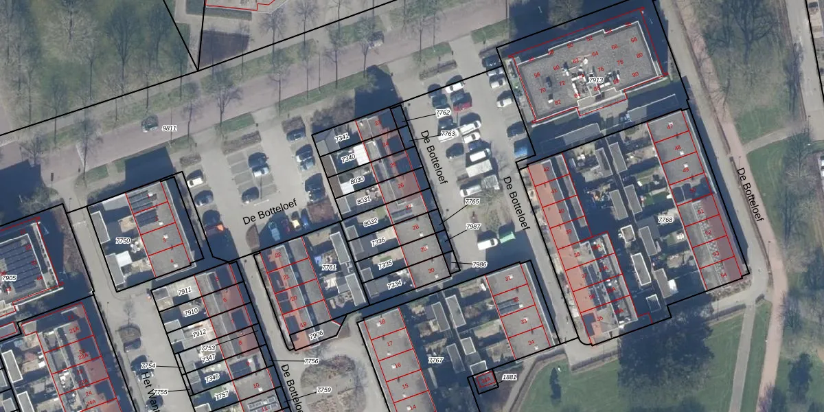 Het perceel waarop De Botteloef 27 staat heeft een oppervlakte van 126 m². Dit is een middelgroot perceel. De perceeloppervlakte wordt geregistreerd door het Kadaster. Gedetailleerde informatie over de maten van dit perceel kunt u vinden in het rapport Kadastrale kaart met maatvoering van De Botteloef 27.