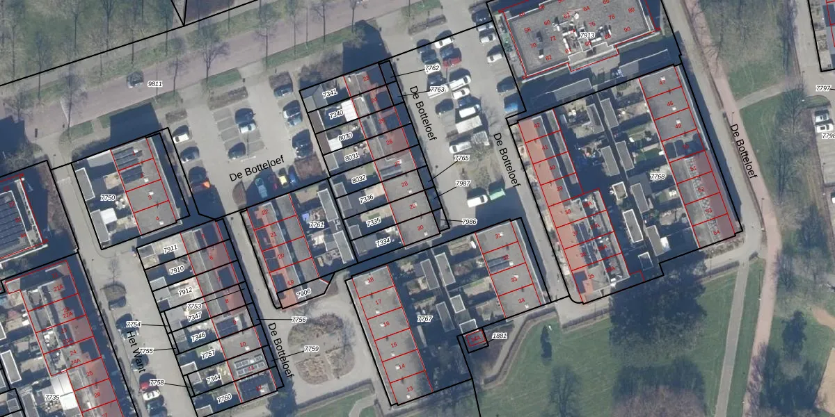 Het perceel waarop De Botteloef 29 staat heeft een oppervlakte van 112 m². Dit is een middelgroot perceel. De perceeloppervlakte wordt geregistreerd door het Kadaster. Gedetailleerde informatie over de maten van dit perceel kunt u vinden in het rapport Kadastrale kaart met maatvoering van De Botteloef 29.