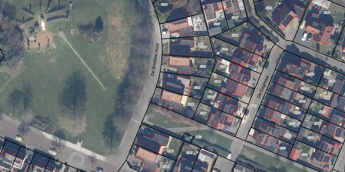 Het perceel waarop De Bredase Hunt 8 staat heeft een oppervlakte van 311 m². Dit is een groot perceel. De perceeloppervlakte wordt geregistreerd door het Kadaster. Gedetailleerde informatie over de maten van dit perceel kunt u vinden in het rapport Kadastrale kaart met maatvoering van De Bredase Hunt 8.
