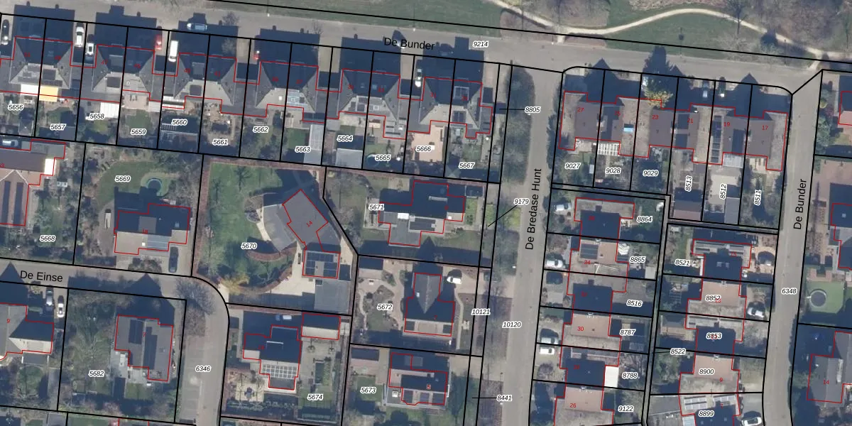 Het perceel waarop De Bredase Hunt 9 staat heeft een oppervlakte van 701 m². Dit is een groot perceel. De perceeloppervlakte wordt geregistreerd door het Kadaster. Gedetailleerde informatie over de maten van dit perceel kunt u vinden in het rapport Kadastrale kaart met maatvoering van De Bredase Hunt 9.