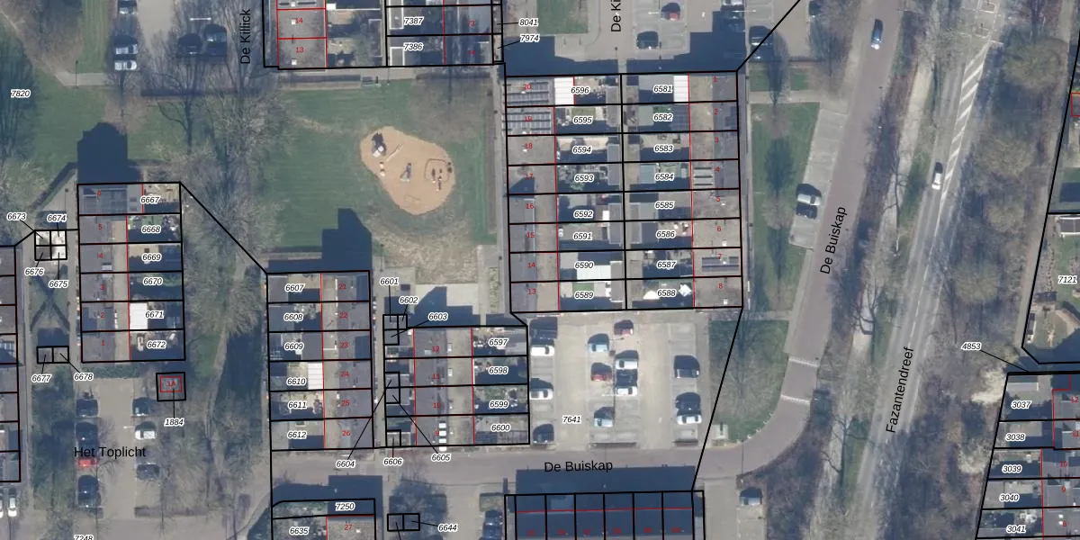 Het perceel waarop De Buiskap 14 staat heeft een oppervlakte van 116 m². Dit is een middelgroot perceel. De perceeloppervlakte wordt geregistreerd door het Kadaster. Gedetailleerde informatie over de maten van dit perceel kunt u vinden in het rapport Kadastrale kaart met maatvoering van De Buiskap 14.