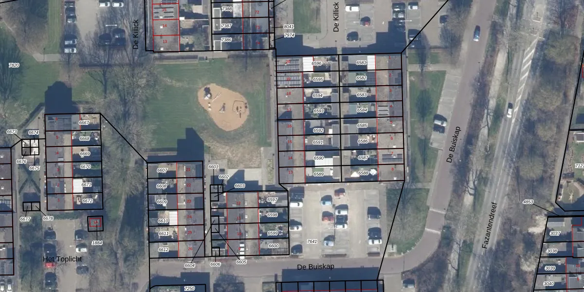 Het perceel waarop De Buiskap 15 staat heeft een oppervlakte van 116 m². Dit is een middelgroot perceel. De perceeloppervlakte wordt geregistreerd door het Kadaster. Gedetailleerde informatie over de maten van dit perceel kunt u vinden in het rapport Kadastrale kaart met maatvoering van De Buiskap 15.