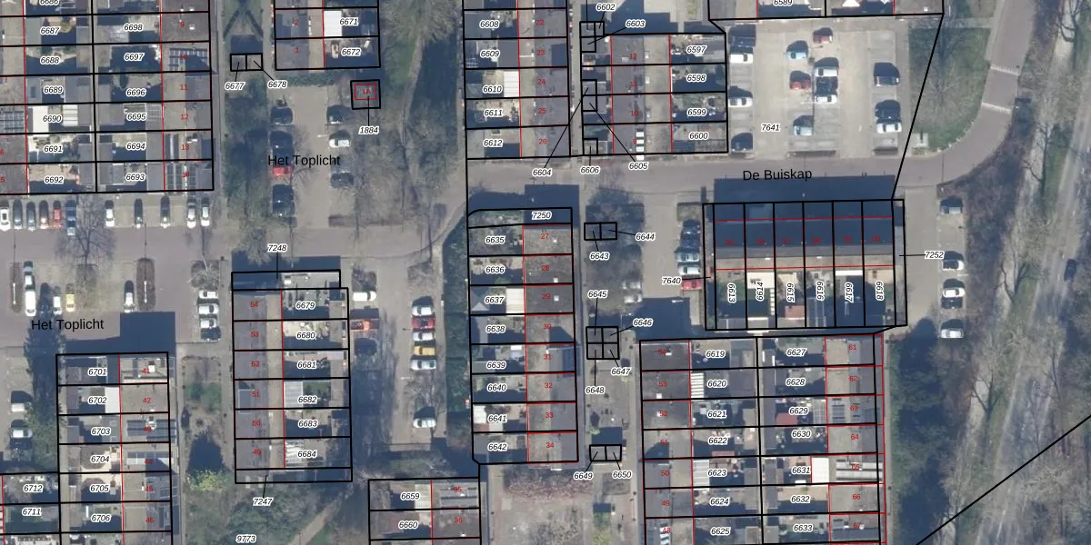Het perceel waarop De Buiskap 28 staat heeft een oppervlakte van 102 m². Dit is een middelgroot perceel. De perceeloppervlakte wordt geregistreerd door het Kadaster. Gedetailleerde informatie over de maten van dit perceel kunt u vinden in het rapport Kadastrale kaart met maatvoering van De Buiskap 28.