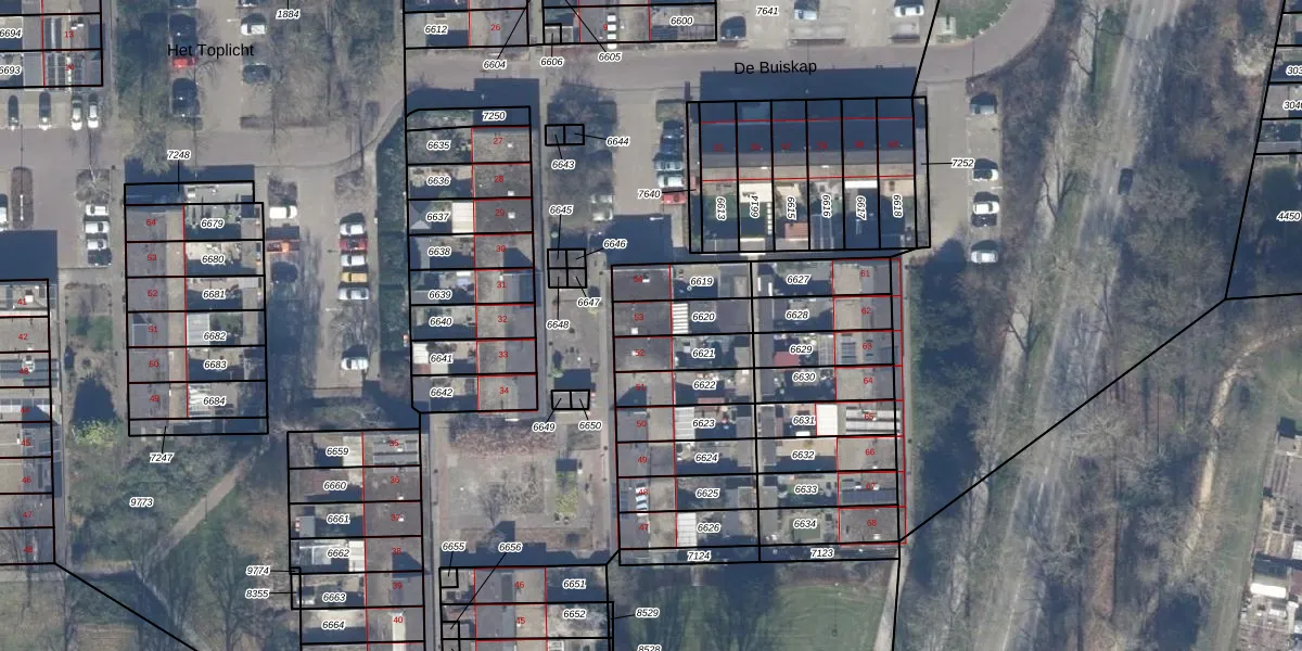 Het perceel waarop De Buiskap 53 staat heeft een oppervlakte van 116 m². Dit is een middelgroot perceel. De perceeloppervlakte wordt geregistreerd door het Kadaster. Gedetailleerde informatie over de maten van dit perceel kunt u vinden in het rapport Kadastrale kaart met maatvoering van De Buiskap 53.