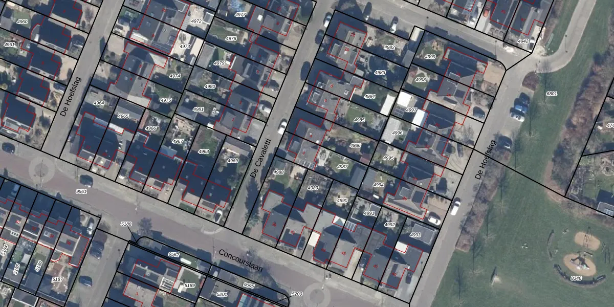 Het perceel waarop De Cavaletti 2 staat heeft een oppervlakte van 253 m². Dit is een middelgroot perceel. De perceeloppervlakte wordt geregistreerd door het Kadaster. Gedetailleerde informatie over de maten van dit perceel kunt u vinden in het rapport Kadastrale kaart met maatvoering van De Cavaletti 2.