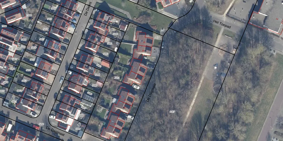 Het perceel waarop De Dagmaat 37 staat heeft een oppervlakte van 2418 m². Dit is een zeer groot perceel. De perceeloppervlakte wordt geregistreerd door het Kadaster. Gedetailleerde informatie over de maten van dit perceel kunt u vinden in het rapport Kadastrale kaart met maatvoering van De Dagmaat 37.