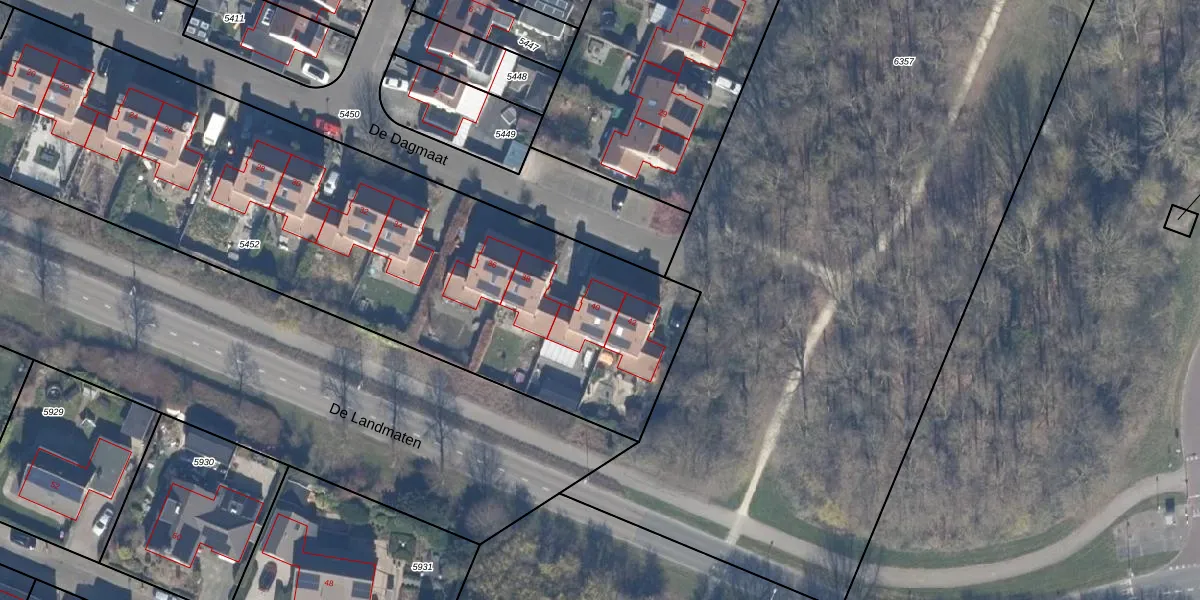 Het perceel waarop De Dagmaat 40 staat heeft een oppervlakte van 3500 m². Dit is een zeer groot perceel. De perceeloppervlakte wordt geregistreerd door het Kadaster. Gedetailleerde informatie over de maten van dit perceel kunt u vinden in het rapport Kadastrale kaart met maatvoering van De Dagmaat 40.