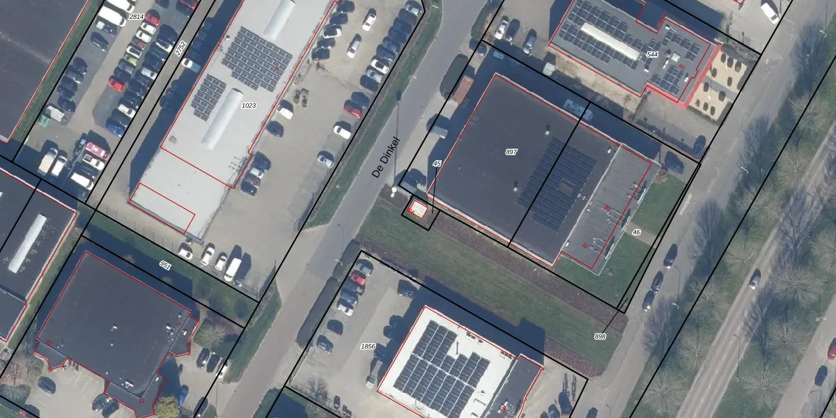 Het perceel waarop het adres ligt is DTN01-K-45. De afkorting 'DTN01' staat voor kadastrale gemeente Dronten. De gemiddelde perceelgrootte in Dronten is 1,8 ha. Dit perceel is kleiner: de perceeloppervlakte bedraagt 41 m². Het kleinste perceel in de kadastrale gemeente is 0 m² groot. De grootste perceeloppervlakte is 25,03 km². Op het perceel bevinden zich geen andere adressen. De huidige grenzen van het perceel zijn digitaal in de Basisregistratie Kadaster (BRK) geregistreerd op 22-12-2008.