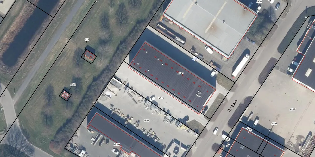 Het perceel waarop De Eem 4-G staat heeft een oppervlakte van 1865 m². Dit is een zeer groot perceel. De perceeloppervlakte wordt geregistreerd door het Kadaster. Gedetailleerde informatie over de maten van dit perceel kunt u vinden in het rapport Kadastrale kaart met maatvoering van De Eem 4-G.