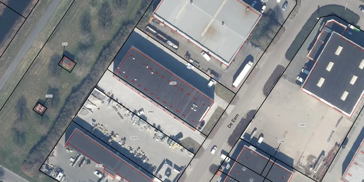Het perceel waarop De Eem 6-C staat heeft een oppervlakte van 1865 m². Dit is een zeer groot perceel. De perceeloppervlakte wordt geregistreerd door het Kadaster. Gedetailleerde informatie over de maten van dit perceel kunt u vinden in het rapport Kadastrale kaart met maatvoering van De Eem 6-C.