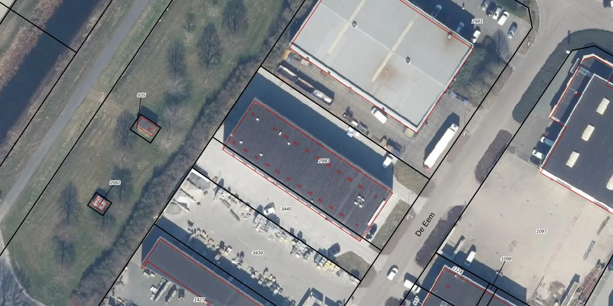 Het perceel waarop De Eem 6-F staat heeft een oppervlakte van 1865 m². Dit is een zeer groot perceel. De perceeloppervlakte wordt geregistreerd door het Kadaster. Gedetailleerde informatie over de maten van dit perceel kunt u vinden in het rapport Kadastrale kaart met maatvoering van De Eem 6-F.
