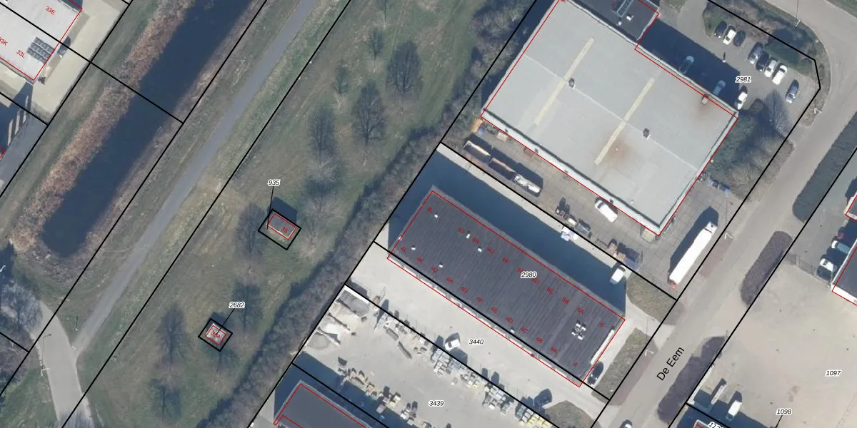 Het perceel waarop De Eem 6-L staat heeft een oppervlakte van 1865 m². Dit is een zeer groot perceel. De perceeloppervlakte wordt geregistreerd door het Kadaster. Gedetailleerde informatie over de maten van dit perceel kunt u vinden in het rapport Kadastrale kaart met maatvoering van De Eem 6-L.