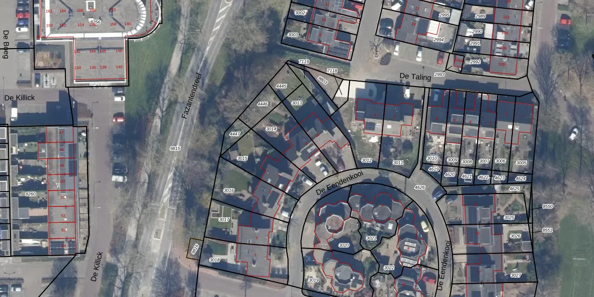 Het perceel waarop De Eendenkooi 9 staat heeft een oppervlakte van 315 m². Dit is een groot perceel. De perceeloppervlakte wordt geregistreerd door het Kadaster. Gedetailleerde informatie over de maten van dit perceel kunt u vinden in het rapport Kadastrale kaart met maatvoering van De Eendenkooi 9.