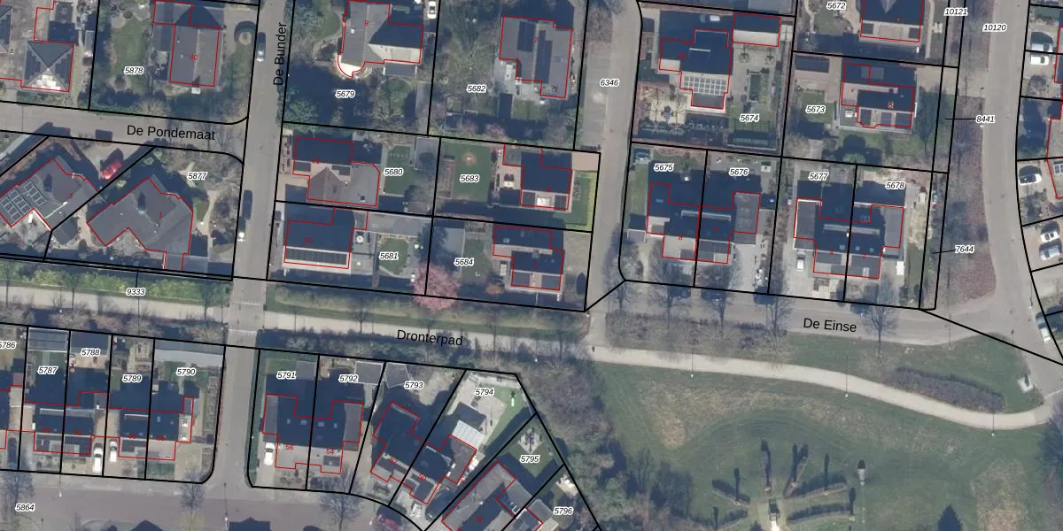 De Einse 1 is gelegen op kadastraal perceel DTN01A5684. Deze kadastrale aanduiding is uniek en wordt gebruikt door het Kadaster om eigendomsrechten en andere zakelijke rechten vast te leggen. Het perceel maakt onderdeel uit van de kadastrale gemeente Dronten.