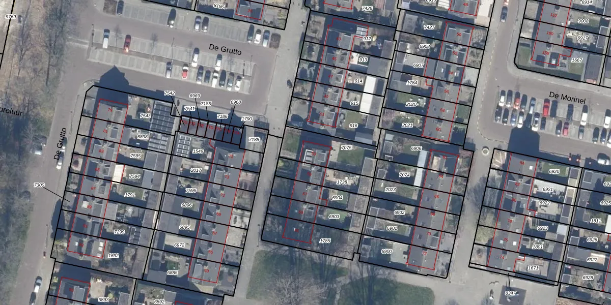 De Grutto 53 is gelegen op kadastraal perceel DTN01A7075. Deze kadastrale aanduiding is uniek en wordt gebruikt door het Kadaster om eigendomsrechten en andere zakelijke rechten vast te leggen. Het perceel maakt onderdeel uit van de kadastrale gemeente Dronten.