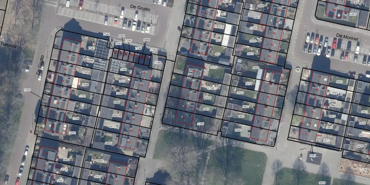 Het perceel waarop De Grutto 57 staat heeft een oppervlakte van 200 m². Dit is een middelgroot perceel. De perceeloppervlakte wordt geregistreerd door het Kadaster. Gedetailleerde informatie over de maten van dit perceel kunt u vinden in het rapport Kadastrale kaart met maatvoering van De Grutto 57.