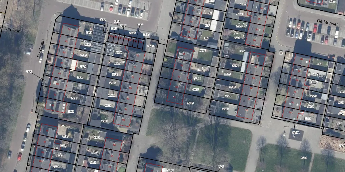Het perceel waarop De Grutto 59 staat heeft een oppervlakte van 200 m². Dit is een middelgroot perceel. De perceeloppervlakte wordt geregistreerd door het Kadaster. Gedetailleerde informatie over de maten van dit perceel kunt u vinden in het rapport Kadastrale kaart met maatvoering van De Grutto 59.