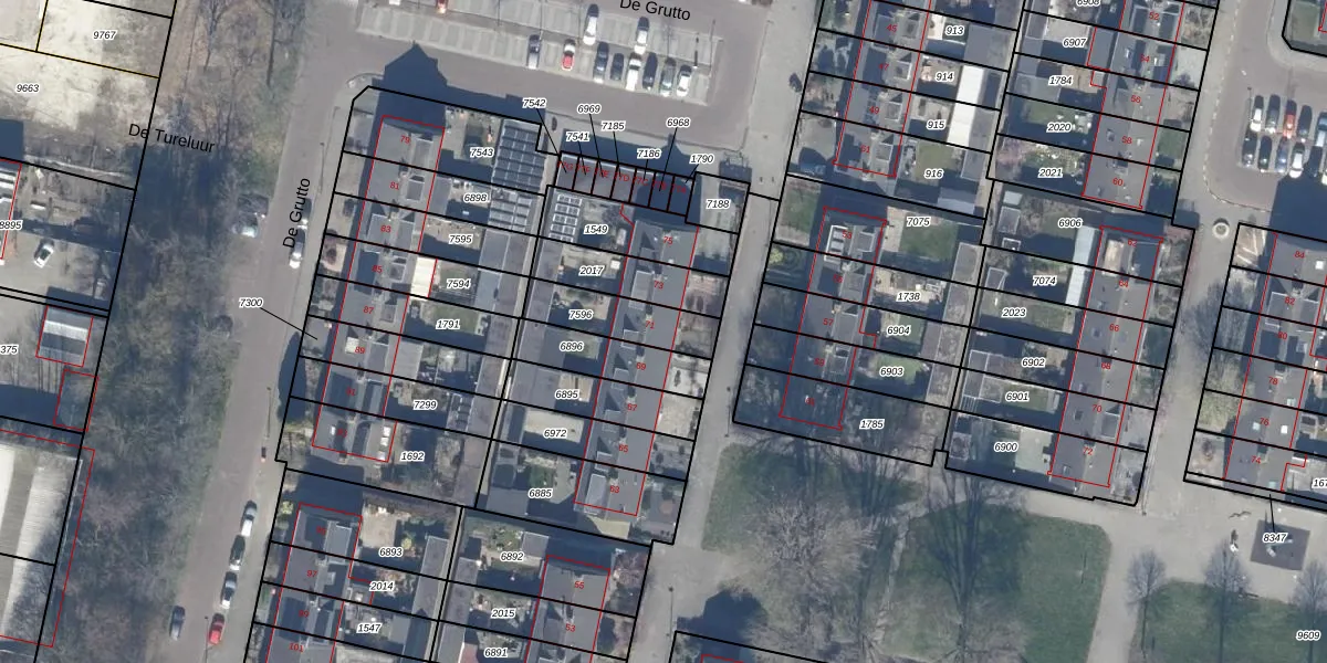 Het perceel waarop De Grutto 71 staat heeft een oppervlakte van 188 m². Dit is een middelgroot perceel. De perceeloppervlakte wordt geregistreerd door het Kadaster. Gedetailleerde informatie over de maten van dit perceel kunt u vinden in het rapport Kadastrale kaart met maatvoering van De Grutto 71.