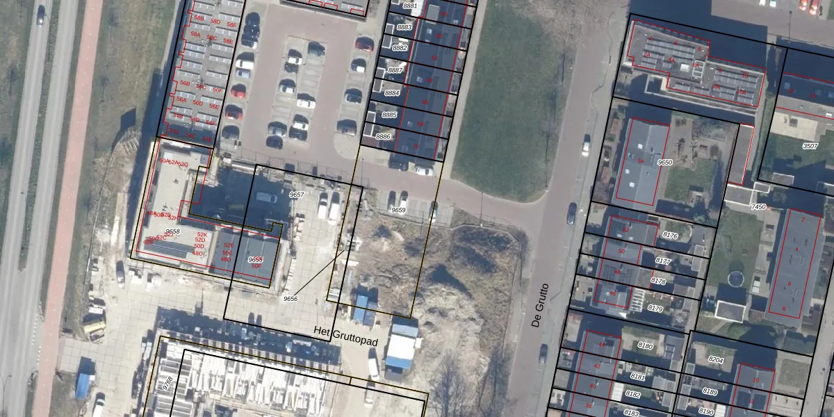 Het perceel waarop De Grutto 74 staat heeft een oppervlakte van 704 m². Dit is een groot perceel. De perceeloppervlakte wordt geregistreerd door het Kadaster. Gedetailleerde informatie over de maten van dit perceel kunt u vinden in het rapport Kadastrale kaart met maatvoering van De Grutto 74.