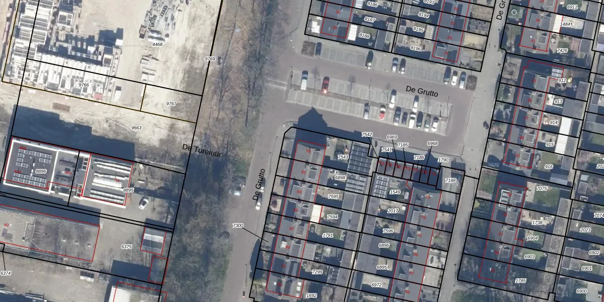 Het perceel waarop De Grutto 79 staat heeft een oppervlakte van 318 m². Dit is een groot perceel. De perceeloppervlakte wordt geregistreerd door het Kadaster. Gedetailleerde informatie over de maten van dit perceel kunt u vinden in het rapport Kadastrale kaart met maatvoering van De Grutto 79.