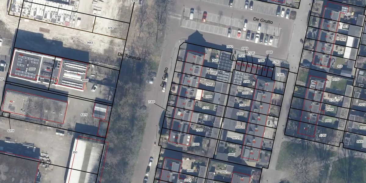 Het perceel waarop De Grutto 85 staat heeft een oppervlakte van 197 m². Dit is een middelgroot perceel. De perceeloppervlakte wordt geregistreerd door het Kadaster. Gedetailleerde informatie over de maten van dit perceel kunt u vinden in het rapport Kadastrale kaart met maatvoering van De Grutto 85.