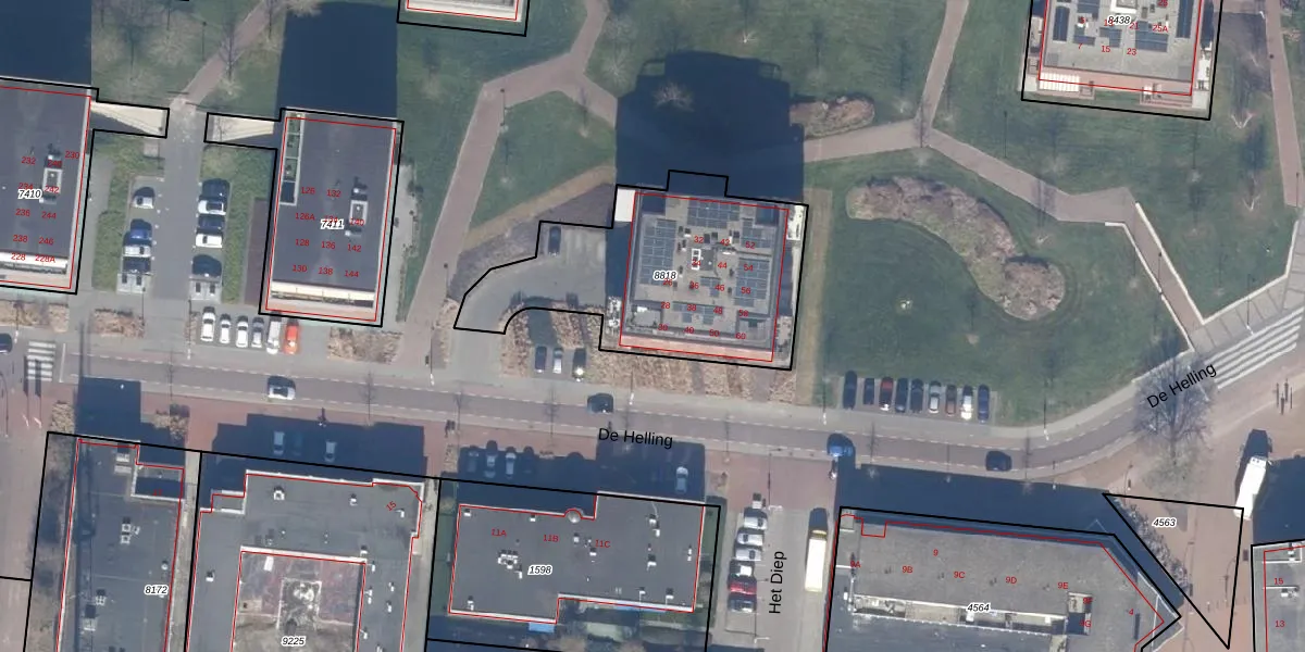 Het perceel waarop De Helling 36 staat heeft een oppervlakte van 1015 m². Dit is een zeer groot perceel. De perceeloppervlakte wordt geregistreerd door het Kadaster. Gedetailleerde informatie over de maten van dit perceel kunt u vinden in het rapport Kadastrale kaart met maatvoering van De Helling 36.