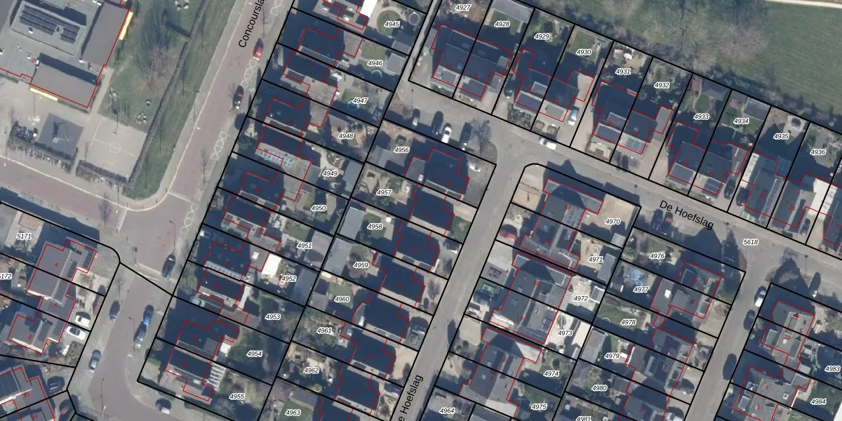 Het perceel waarop De Hoefslag 13 staat heeft een oppervlakte van 267 m². Dit is een middelgroot perceel. De perceeloppervlakte wordt geregistreerd door het Kadaster. Gedetailleerde informatie over de maten van dit perceel kunt u vinden in het rapport Kadastrale kaart met maatvoering van De Hoefslag 13.