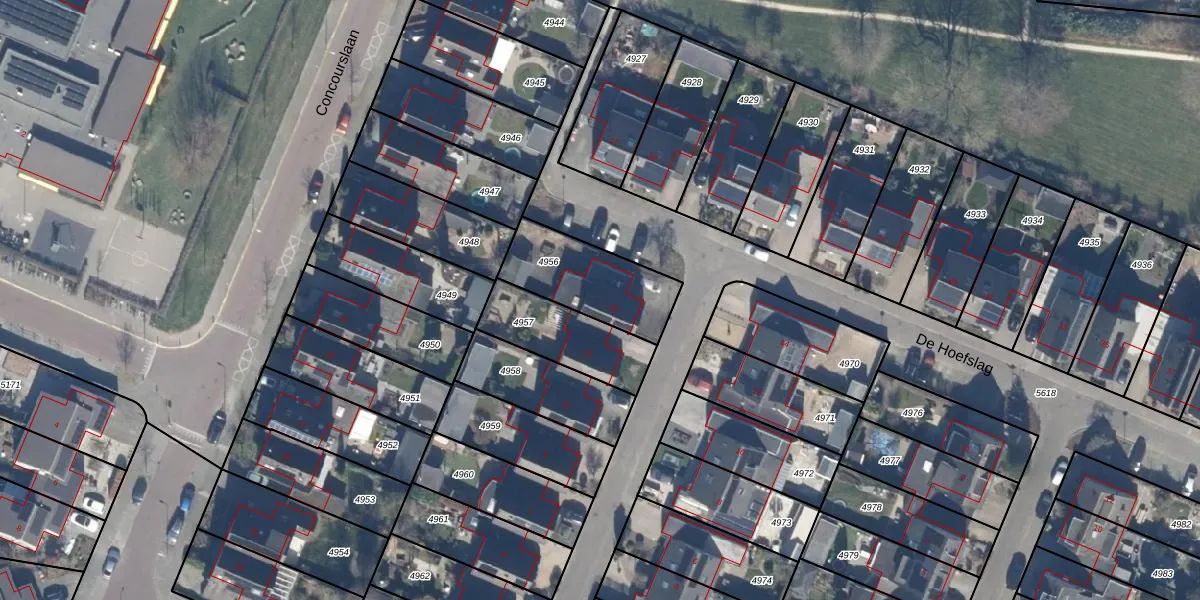 Het perceel waarop De Hoefslag 15 staat heeft een oppervlakte van 323 m². Dit is een groot perceel. De perceeloppervlakte wordt geregistreerd door het Kadaster. Gedetailleerde informatie over de maten van dit perceel kunt u vinden in het rapport Kadastrale kaart met maatvoering van De Hoefslag 15.