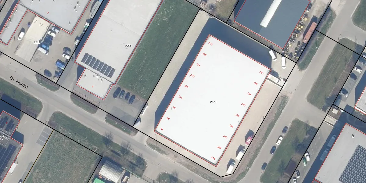 Het perceel waarop De Hunze 8-C staat heeft een oppervlakte van 4493 m². Dit is een zeer groot perceel. De perceeloppervlakte wordt geregistreerd door het Kadaster. Gedetailleerde informatie over de maten van dit perceel kunt u vinden in het rapport Kadastrale kaart met maatvoering van De Hunze 8-C.